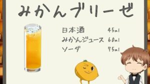 今回は休日を過ごす話。雨が降ってきたのに、用意がない。そこでバーテンの夫は料理酒を使ってみかんブリーゼを作る。日本酒カクテルだが、みかんジュースを使うのがコツだ。オレンジジュースではダメなのだ。