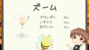今日の至福カクテルはズーム。ブランデーにハチミツと生クリームを入れたもので、シナモンみたいな匂いがして飲むブランデー・ケーキといった味わい。千里はソラを抱きしめるが、離そうとしないw。