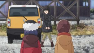 OPキャンセルでキャンプ場に千明、犬子、鳥羽先生が乗り込んだところから始まった。気が急いて早く到着したらしい。早速先生に荷物を任せて千明と犬子はチェックインする。