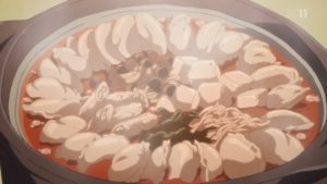 突然キャンプ場に現れたなでしこにリンはあっけにとられる。なでしこはそれを尻目にナベの用意をしてしまう。できあがったのは唐辛子の利いた餃子鍋だ。
