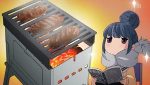 そこで見つけたのが、コンパクト焚き火グリル「B6君」。リンと斎藤はこれを使って焼肉を腹一杯食べる妄想が止まらない。