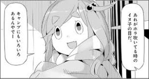(1) キャンプの楽しみ方は国によって様々。アメリカではキャンピングカーが主流だと千明が言う。それを継いで、犬子がニュージーランドではハンティングが盛んなので、銃を持ってキャンプをしたり、カナダではカヌーで川下りしながらキャンプ場へ行き、スイスではスキーキャンプが盛んだと言う。ナデシコはひとつひとつにそうなんだあと驚嘆する。しかし千明は犬子の目付きがホラを吹くときのものだと注意する。