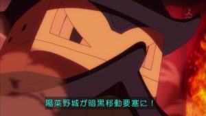 ラスボスは何と移動要塞と化した陽菜野城で、声は青山元気が演じている。それも見事に倒し、歌の前にチアフルーツの座長である御前が満員のお客様に挨拶した。そして元気を呼び込み、主題歌を9人全員で合唱する。