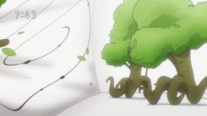 次に水のカードを実行して、木を水浸しにして浮かび上がらせて、