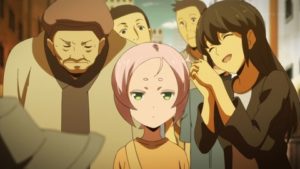 前大統領は徳を貯め過ぎて、人を殺す衝動が止められそうになかった。そこでキノに徳ポイントを説明している。やがて前大統領の顔色が変わって来た。懐にはナイフを忍ばせている。でもキノもリボルバーにかけた手を離そうとしない。