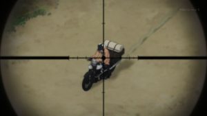 山賊の長老と若造が高い山から待ち伏せをしている。最初に若造が見つけたカモはシズと、陸を抱いたティーだった。長老は彼らを狙ってはいかんと言う。何故ならティーが握っているのは信管を捨てた手榴弾だったから。ついでキノとエルメスが通りがかった。若造はキノが女だと気づき、俄然張り切って遅いましょうと言うが、長老は女一人で旅ができると言うことは凄腕ということと言って0点をつける。