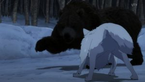 ところがこの母羆の胃の中は空っぽだった。もう一頭羆、しかも人を食べたウェンカムイがいて、自分の獲物である男の死骸を探しに来る。