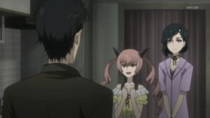 タイムリープした岡部は、ラジ館屋上へ急ぐが、黒ずくめのレイエス教授が襲いかかる。岡部が足止めして鈴羽とまゆりをタイムマシンに乗せるが、カガリとレスキネンが現れレイエスは射殺されタイムマシンは爆破されてしまう。前回のレスキネンの到着時間より早い。なぜだ?