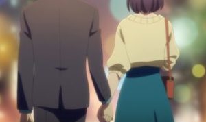 一歩目から高いヒールに森子はつまづきそうになるが、桜井はさっと森子の手を取り受け止める。そのままギュッと手を握りしめて、二人は歩いて行く。