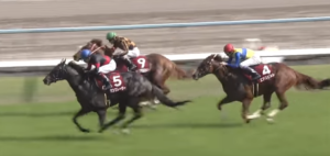 直線を向くと外に出していたサトノワルキューレがグイグイ伸びて来る。デュッセルドルフは一杯になり、ノームコアが先頭に立つが、残り200でパイオニアバイオが交わして先頭に立つ。しかし残り50mほどでサトノワルキューレが一気に差し切る。