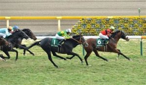 日曜の京都競馬場は晴れながら土曜日にずっと雨が降っていたので、かなりの重馬場。