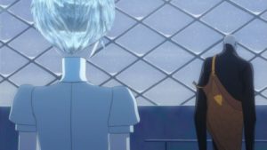 次の日、流氷を砕いていると腕を付け直したらもっと働けると言い出した。思わず海水の中に誘い込まれるフォス。アンタークが掬い上げたが、フォスの腕はもげていた。