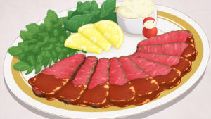 今日のごちそうはセラ、リズの作った肉料理と士郎の作った安くて美味しいローストビーフ(作り方の解説入り)。