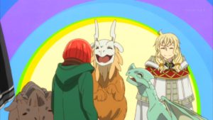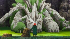 チセはドラゴンから地上に降ろされるときに間違って海に落ちる。