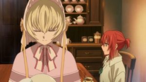 ちょうどそのとき、チセの浄化が終わった。魔術師は捨て台詞を残して消える。チセは急に疲労で倒れこんでしまう。彼女は私はいつ死ぬのと尋ねる。エリアスは3年かな、策は考えてあるから心配いらないと答える。
