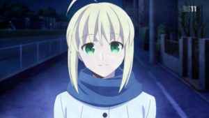 最後にセイバーと士郎は柳洞寺に初詣の手伝いに行くので、セイバーも付いてくる。