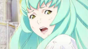 地上に現れた球体の巨大物体はドロモスと呼ばれるものだった。人類が神より奪った古代兵器だ。ガブリエルはそれを見て撤退しようとするが、エルは母を助けるためそれを拒む。シャリオスが謎の装置に手を突っ込むと、ドロモスはビッグオーのような巨大な手を出して波動砲を放ち、神の宇宙船を大破する。シャリオスの暴走を止めたのは、爆風に吹っ飛ばされてシャリオスにフライングボディーアタックを掛けたニーナだった。シャリオスがニーナをギュッと抱きしめると、レッドドラゴンに変身して国王のゴーレムと戦う。ゴーレムパンチもヘッドロックも受けておいて、ゴーレムの土手腹に風穴を開ける。しかしシャリオスと対峙すると動けなくなり、頭を撫でられると裸のニーナに戻ってしまう。しかしカイザルが囮になる間にリタとジャンヌはニーナを助けて逃げてしまう。リタはカイザルとファバロを救い出すために王都に戻り、ニーナとジャンヌは龍の里に隠れる。