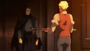 次はある砦にタツゴロウと名乗る伝説の剣士が隊長を訪ねてくる。